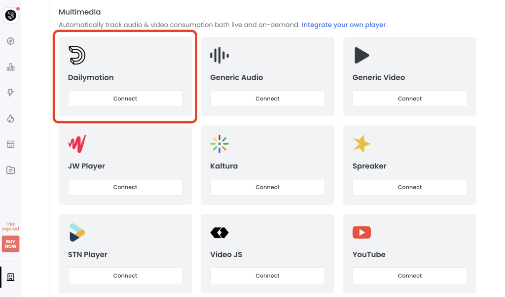 Connect your Dailymotion Player data to your Marfeel analytics dashboard.